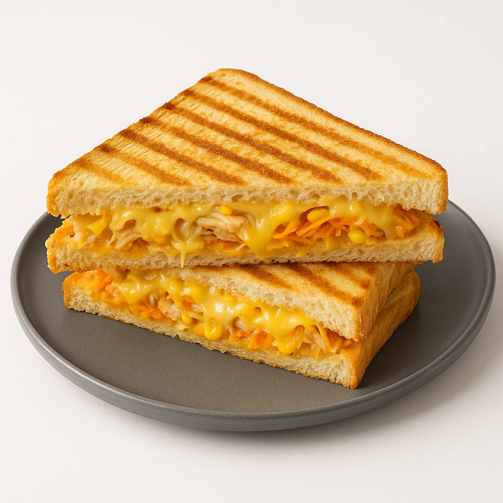 یک ساندویچ کلاب کامل و مقوی با ترکیبی دلچسب از فیله مرغ طعمدار، ژامبون گوشت، سبزیجات تازه شامل هویج، نخود فرنگی و ذرت، همراه با دو نوع پنیر لذیذ پیتزا و گودا.